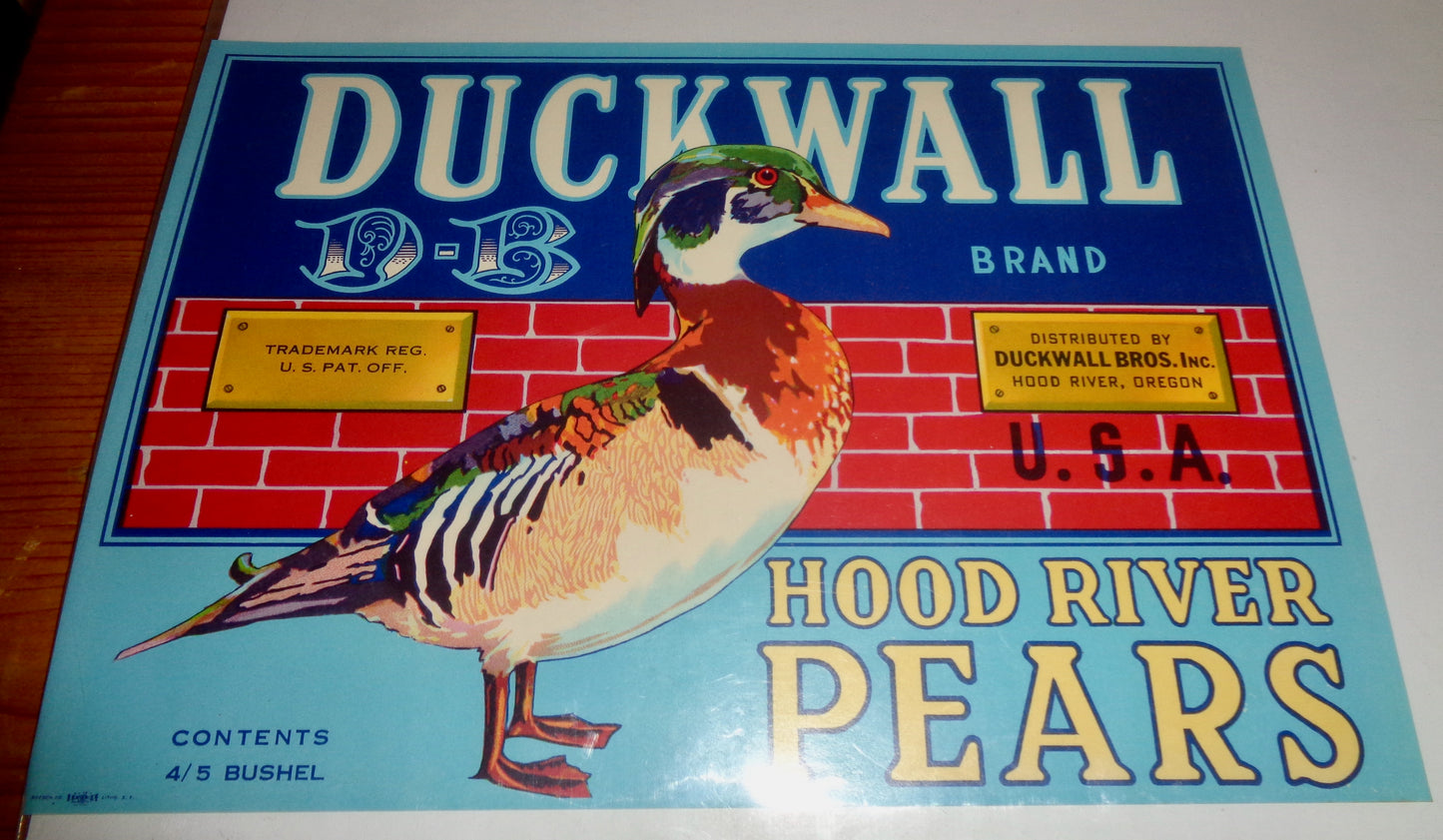 Vintage Original Fruit Crate Label For Duckwall Hood River Pears