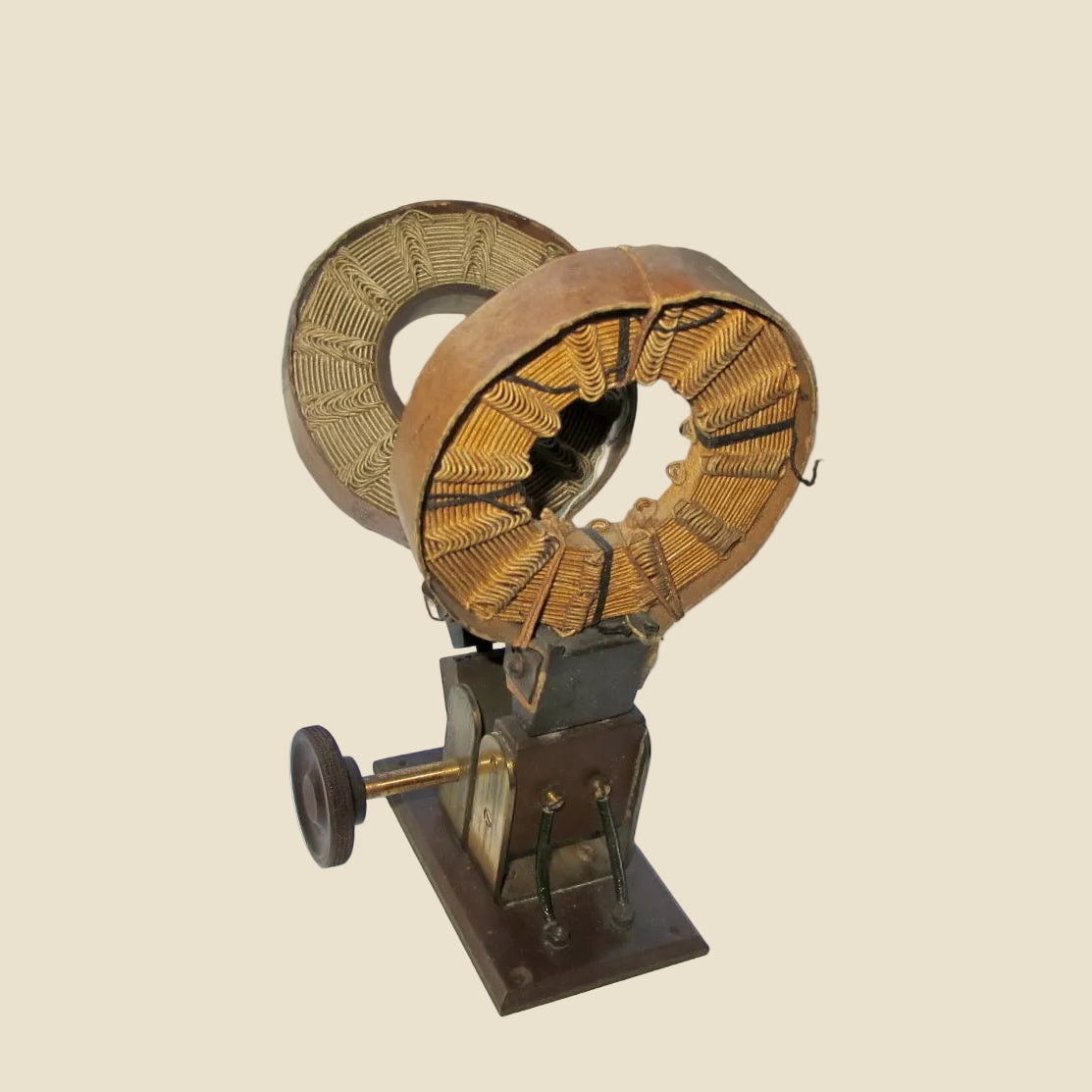 In very good cosmetic condition, one of the coils can be turned to a 90˚ angle with a brass/bakelite screw turner.