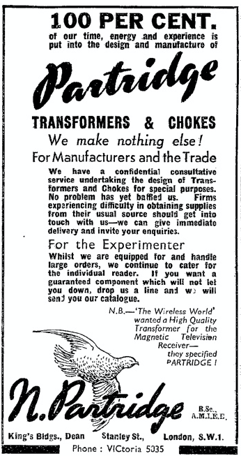 Made by Partridge Transformers Ltd, Tolworth, Surrey, England