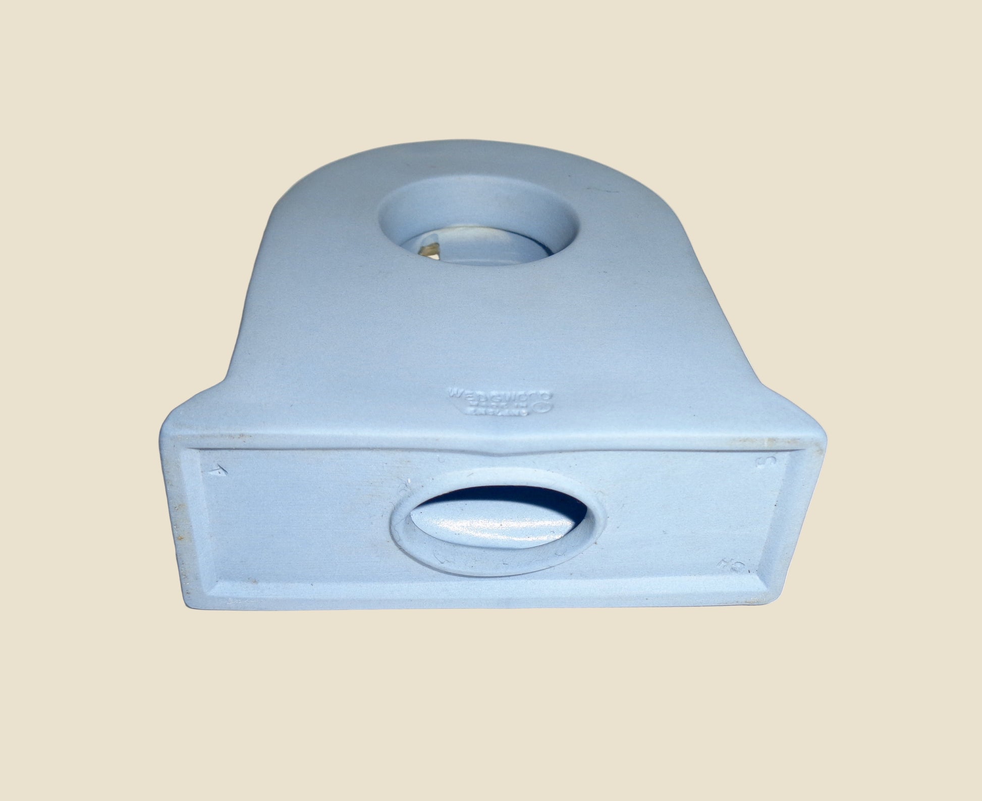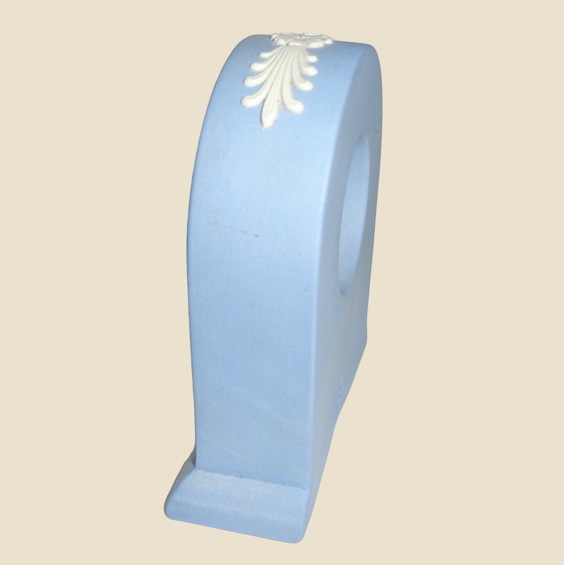 Wedgwood, Made In England, is impressed on the back of the clock. The case is in very good condition, with no restoration work, cracks or chips; it does have a few minor surface blemishes.
