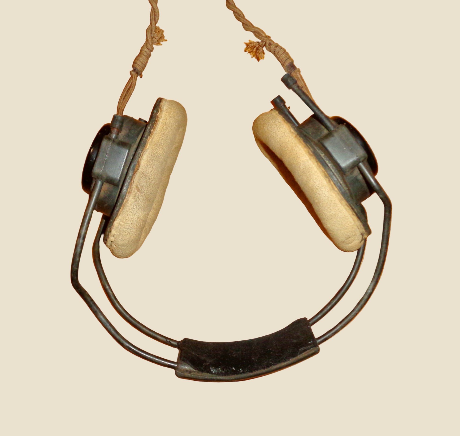 A wonderful WW2 Pair Of RAF Headphones With Type 32 Helmet Receivers 10A/13466. Used by both Air Crew and Ground Crew, these types of headphones were also used with the R1155/T1154 aircraft communications radio.