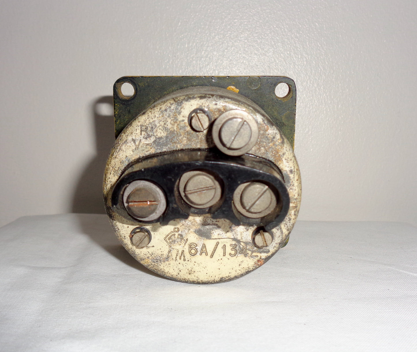 This type of instrument was used to measure the engine temperature in aircraft of the RAF, RCAF, and RAAF including the Spitfire, Mosquito and Lancaster. This one is unusual in that the face is yellow for improved luminosity.